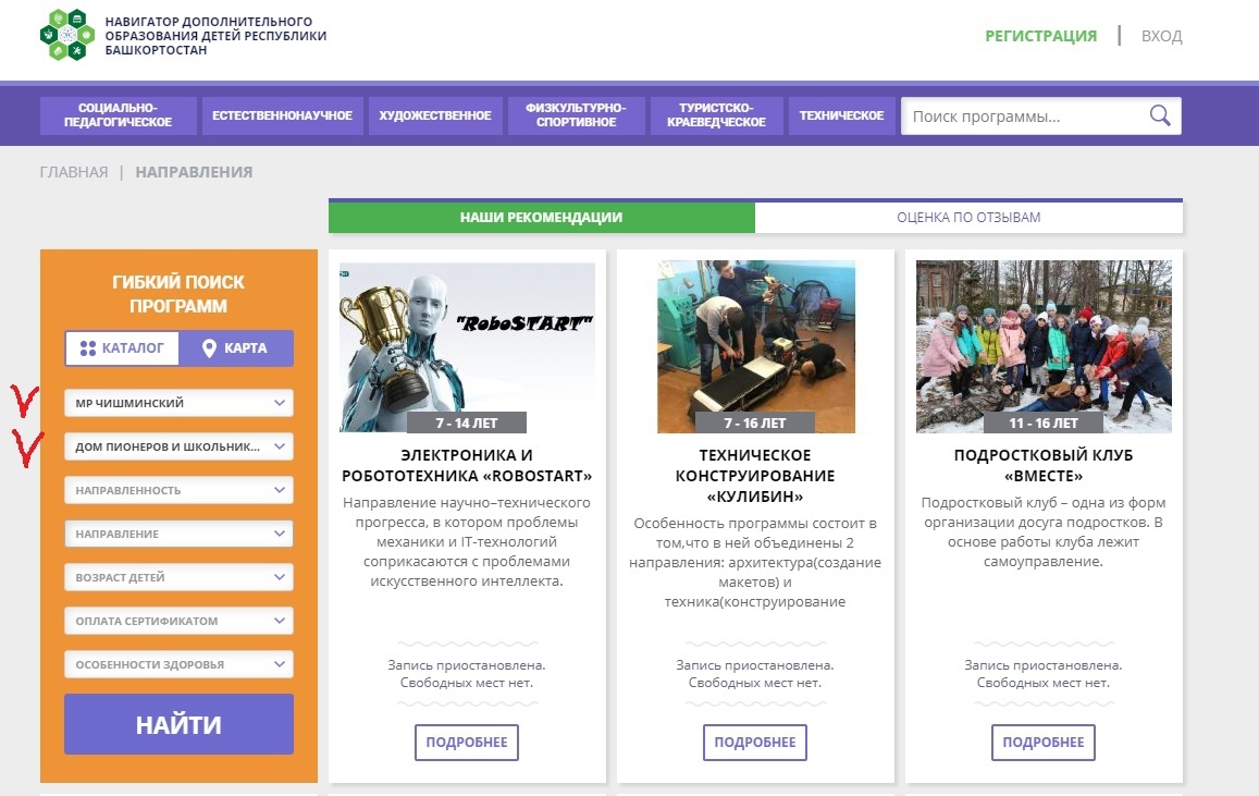 3. В каталоге программ выбрать Чишминский район, Дом пионеров и школьников.